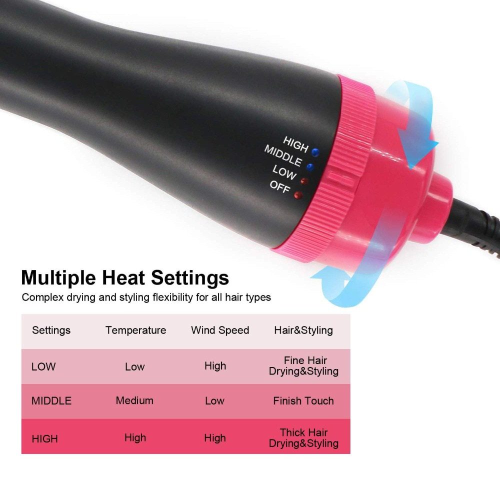 It works great. You choose low heat and strong blowing, weak blowing and stronger heat and stronger heat with strong blowing. Great that there isn't a setting that is too hot.