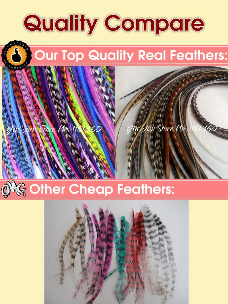 Product Including: 12 pieces Real Rooster Feathers + 30 pieces Mix Color Silicone Lined Micro Beads