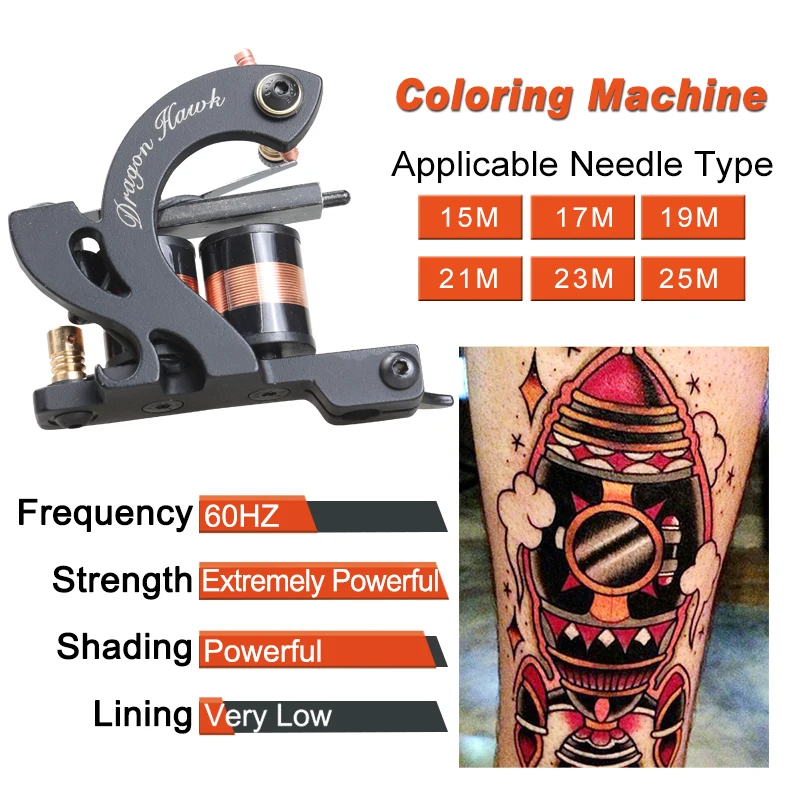 |  Dragonhawk Professional Tattoo Machine Fine Lining Shading Tattoo Gun Coloring Lining 10 Wraps Tattoo Machine Tattoo Supplies |