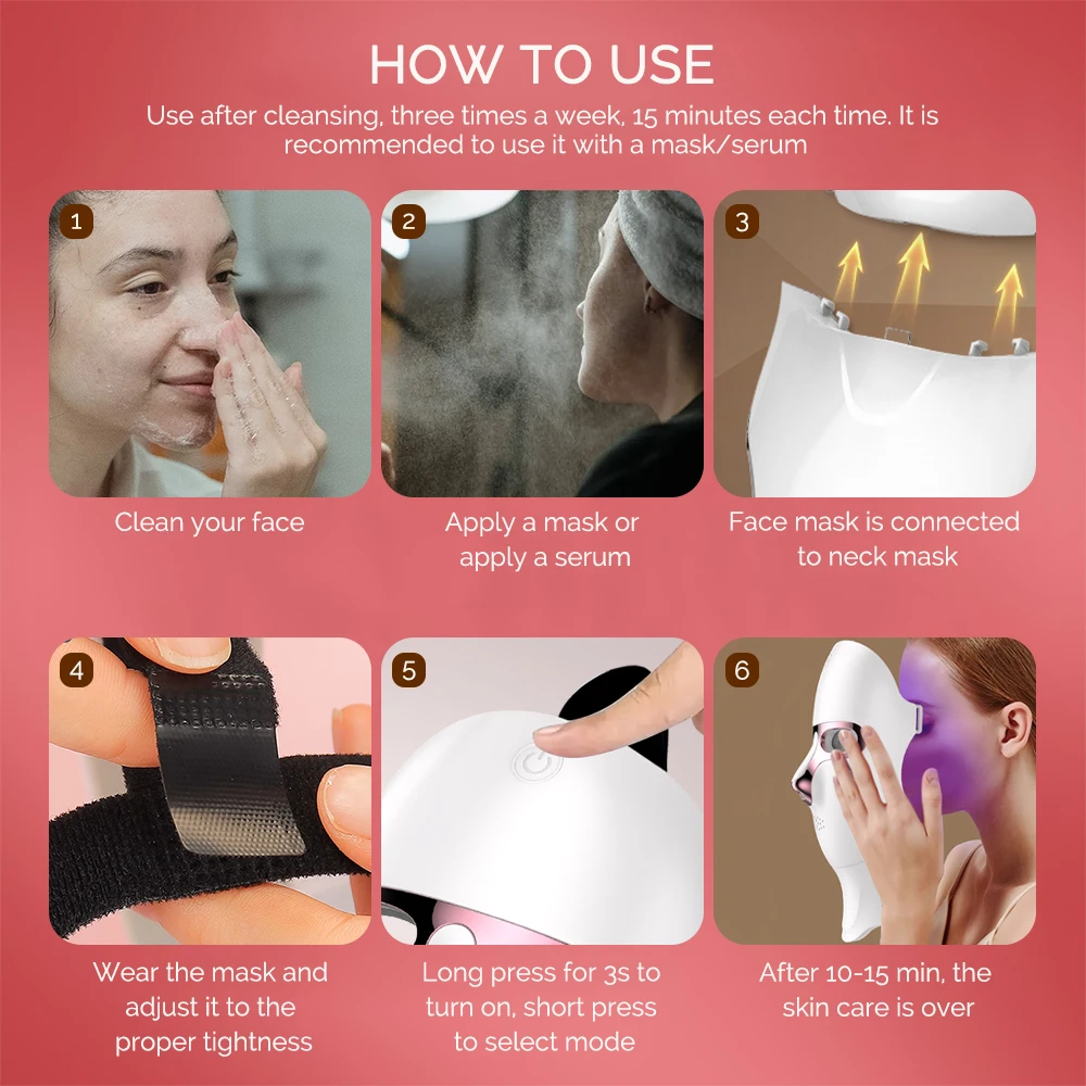 2.Face + Neck Double Care. 89+30 lamp beads, fully cover both your face and neck to realize comprehensive effect.