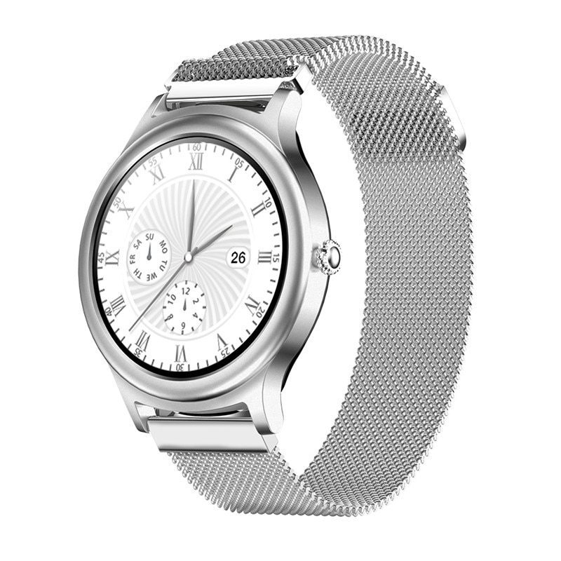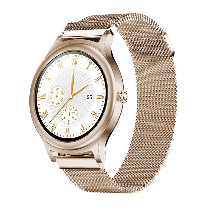 Exquisite Styling; Milanese Mesh Strap; Multiple Dials + DIY; Brightness Control; 24h Heart Rate; Blood Pressure; Blood Oxygen Monitor; Sleeping Monitor; 24 Kinds of Sports; Steps; Calorie; Life Waterproof; Weather; Music Control; Stop Watch; Alarm Clock