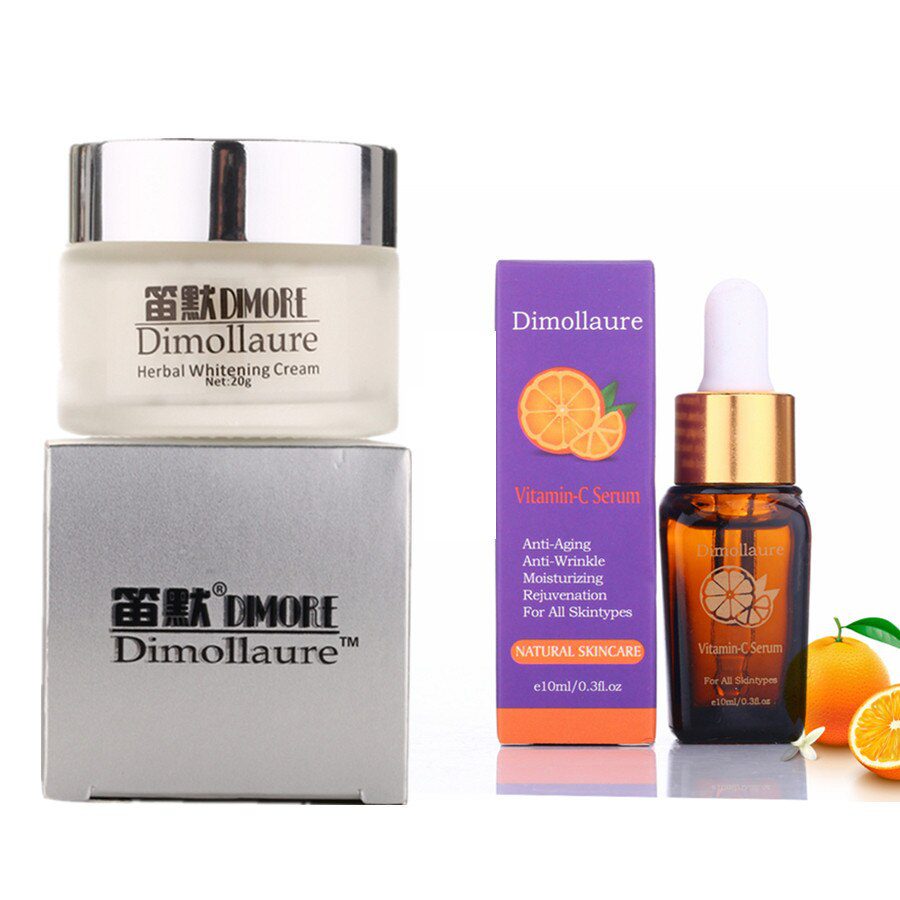 Dimollaure Strong effect whitening cream + Vitamin C serum Acne treament Remove Freckle melasma pigment Melanin sunburn Spots