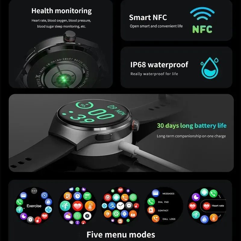 Funciona bien, no es original pero puedes recibir y enviar llamadas ver los mensajes que recibes, monitorear ritmo cardíaco, tensión arterial, temperatura corporal, oxígeno en sangre además de barómetro, altímetro, brujula, GPS, cronómetro, calendario, cuenta atrás etc....