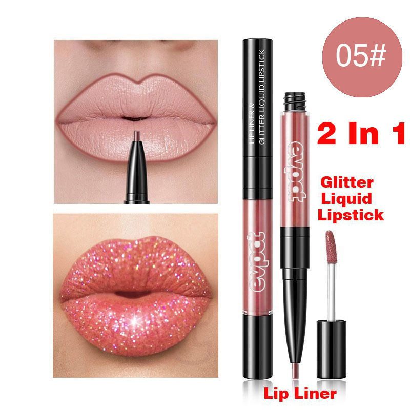 Glitter Lipgloss Makeup Double-headed  Lipliner Waterproof Lasting Shining Diamond Lipgloss Liquid Cosmetics Professional TSLM2