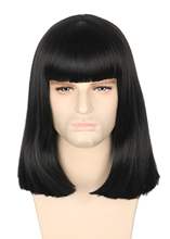 Unisex Black Wig with Bangs Short Straight Halloween Cosplay Costume Party Wigs Lord Farquaad wig