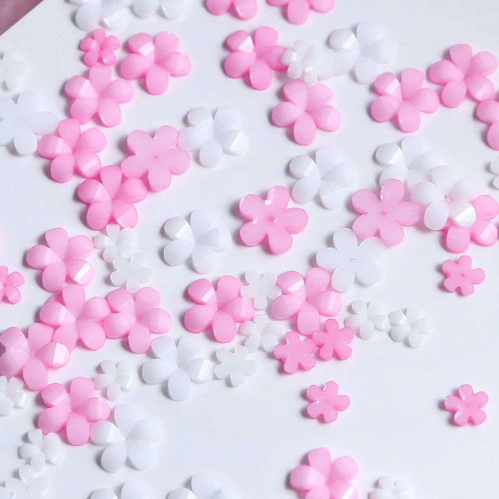 400pcs Kawaii Pink White Flower Nail Art Charms 3D Flowers Rhinestone Nail Parts Decorations Manicure Supplies Accessories