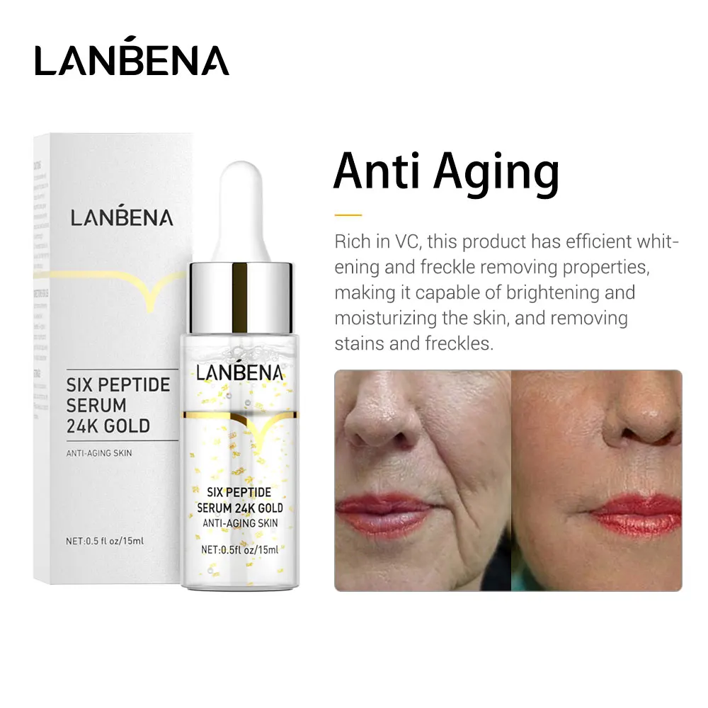 LANBENA Anti-Aging Serum 24K Gold Six Peptides Facial Essence Firming Skin Wrinkle Repair Whitening Moisturizing FaceSik Care10PCS