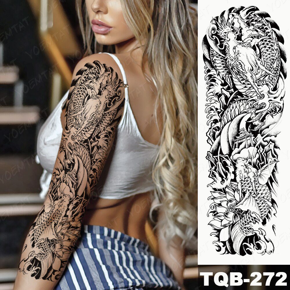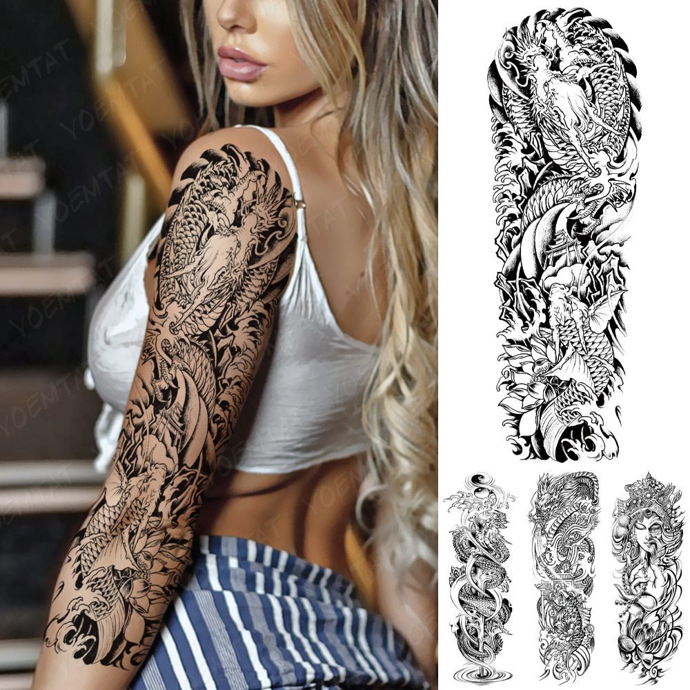Large Full Arm Sleeve Tattoo Japanese Traditional Dragon Waterproof Temporary Tatoo Sticker Black Ink Men Women Body Art Tatto