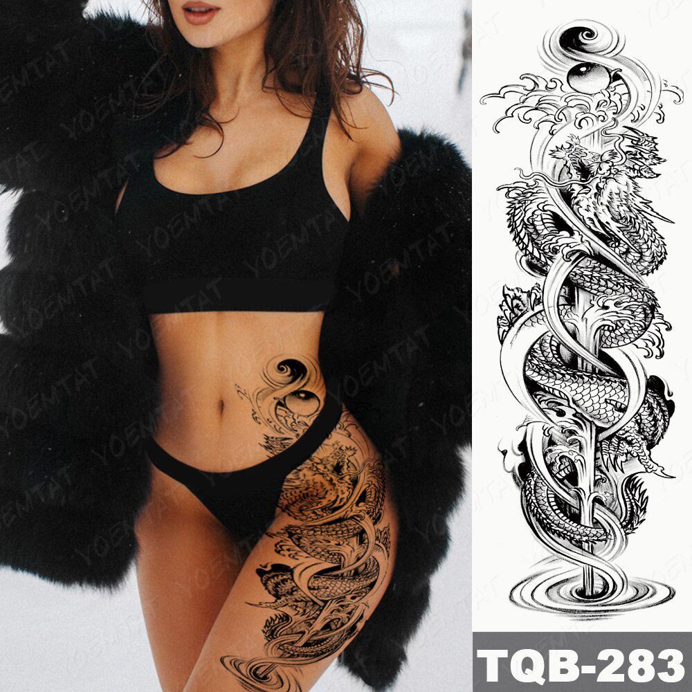 Large Full Arm Sleeve Tattoo Japanese Traditional Dragon Waterproof Temporary Tattoo Sticker Black Ink Men Women Body Art Tattoo