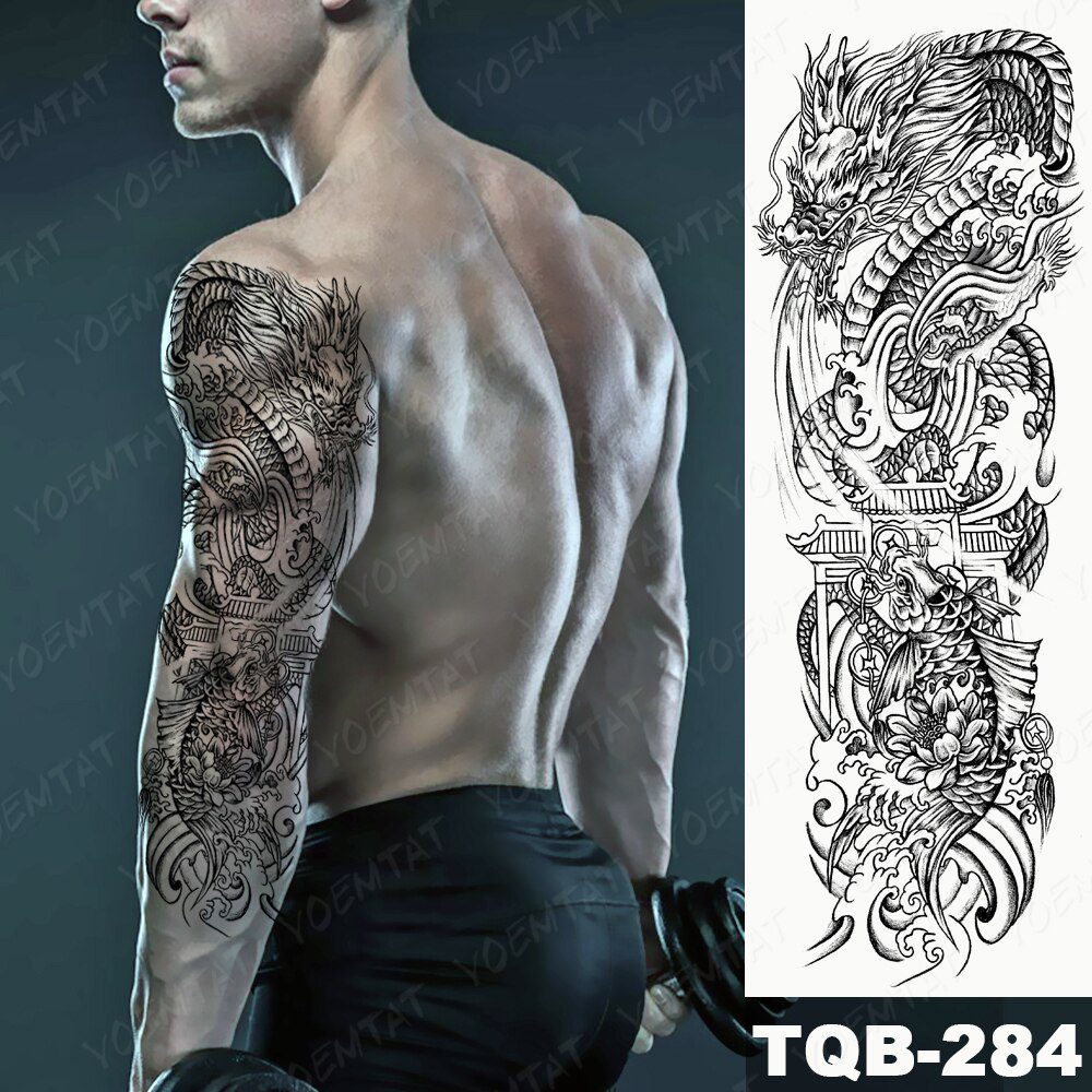 Large Full Arm Sleeve Tattoo Japanese Traditional Dragon Waterproof Temporary Tatoo Sticker Black Ink Men Women Body Art TattoLarge Full Arm Sleeve Tattoo Japanese Traditional Dragon Waterproof Temporary Tatoo Sticker Black Ink Men Women Body Art Tatto
