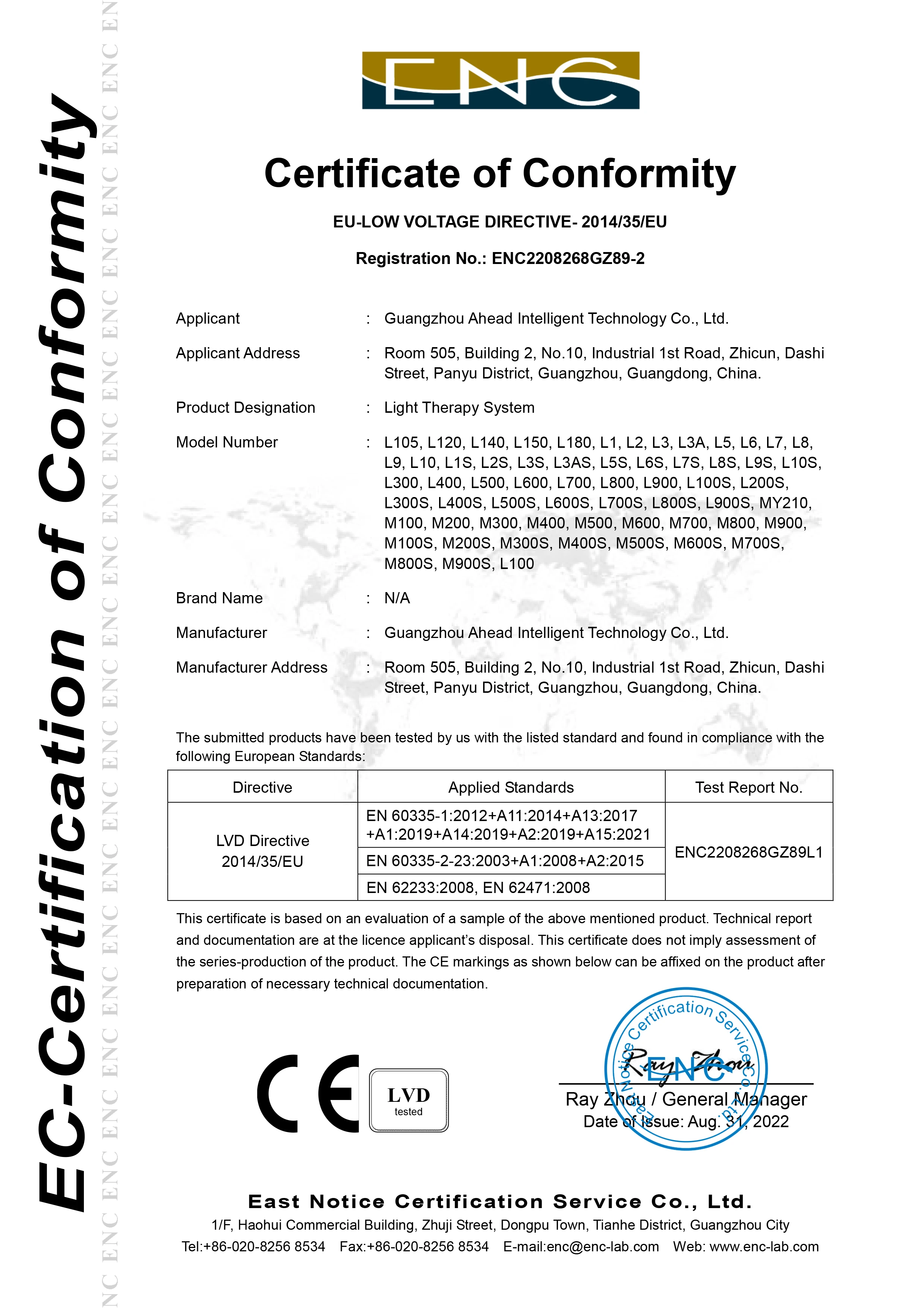 Light wavelength :Blue light 460nm, red light 630nm, amber light 605nm, near-infrared 850nm, with a wavelength variation of +/- 5nm.