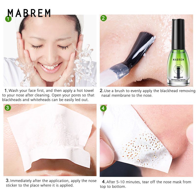 After cleaning the nose and drying it, use a brush to evenly spread the nasal mask on the nose.Apply nasal film to the flat, 5-10 minutes after the nasal film is dry, tear it off from top to bottom.