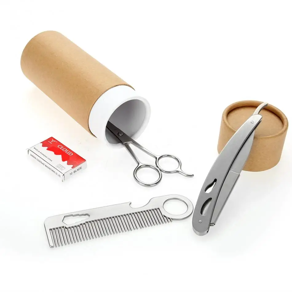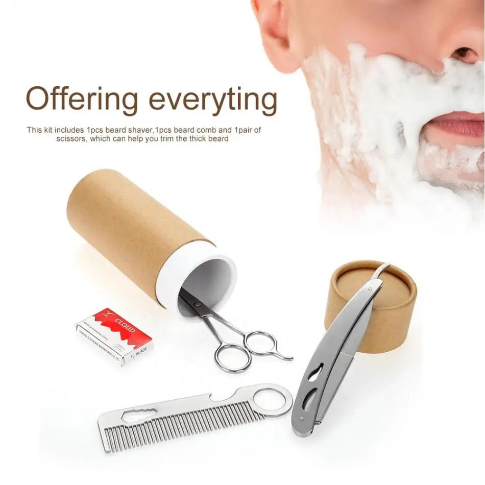 Mustache Facial Hair Care Tool Men Beard Brush Comb Kit Men Mustache Grooming Kit