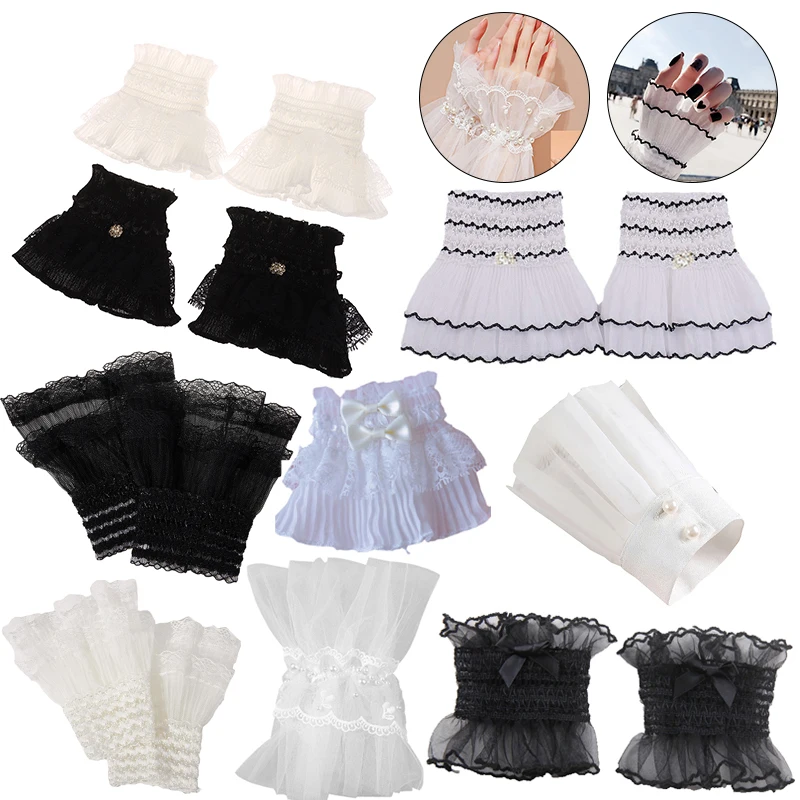 Nail Decorations For Nail Art Lace Fake Pleated Cuff Manicure Photography Props Fake Sleeves Nails Accessories Supplies Charms