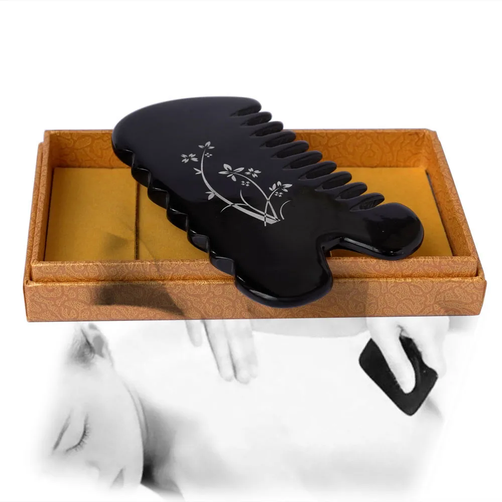 new thicken Ox Horn engraved designs beauty massage Guasha comb