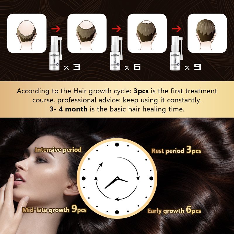 according to the Hair growth cycle : 3pcs is the first treatment course(heavy bald may need more treatment course)