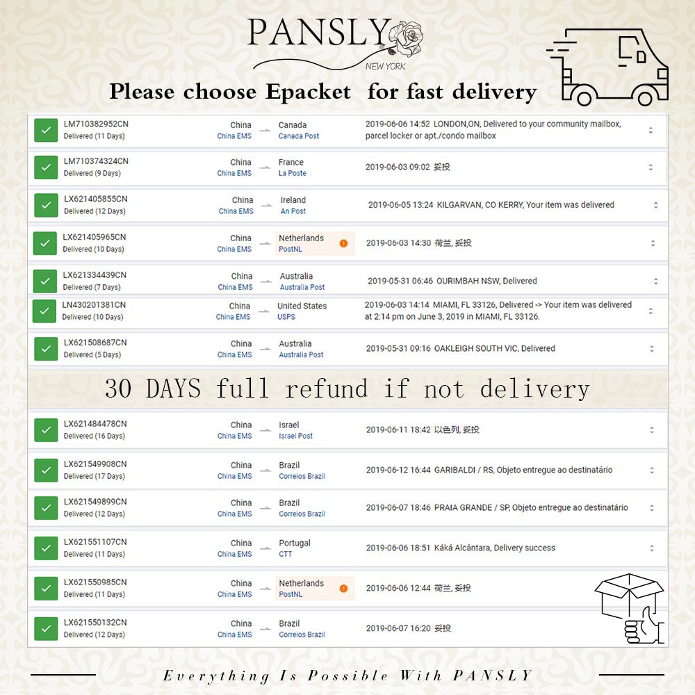 *You can submit refund requests within 15 days after the guaranteed period for delivery (45 days) has expired. You can do it by sending a message on Contact Us page