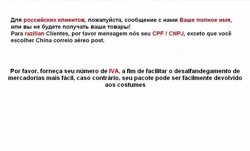 We are not responsible for any custom fees once the items have shipped. By purchasing our products, you consent that one or more packages may be shipped to you and may get custom fees when they arrive to your country.