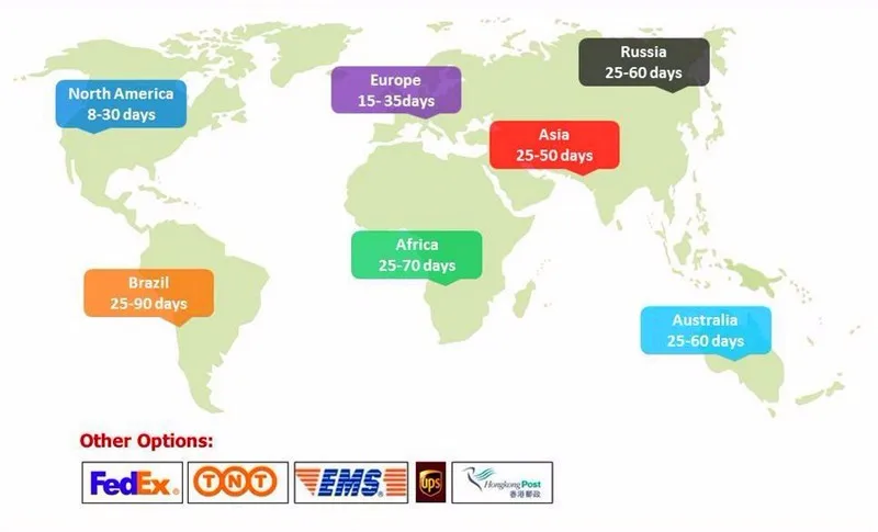 Packages from our warehouse in China will be shipped by ePacket or EMS depending on the weight and size of the product. Packages shipped from our US warehouse are shipped through USPS.