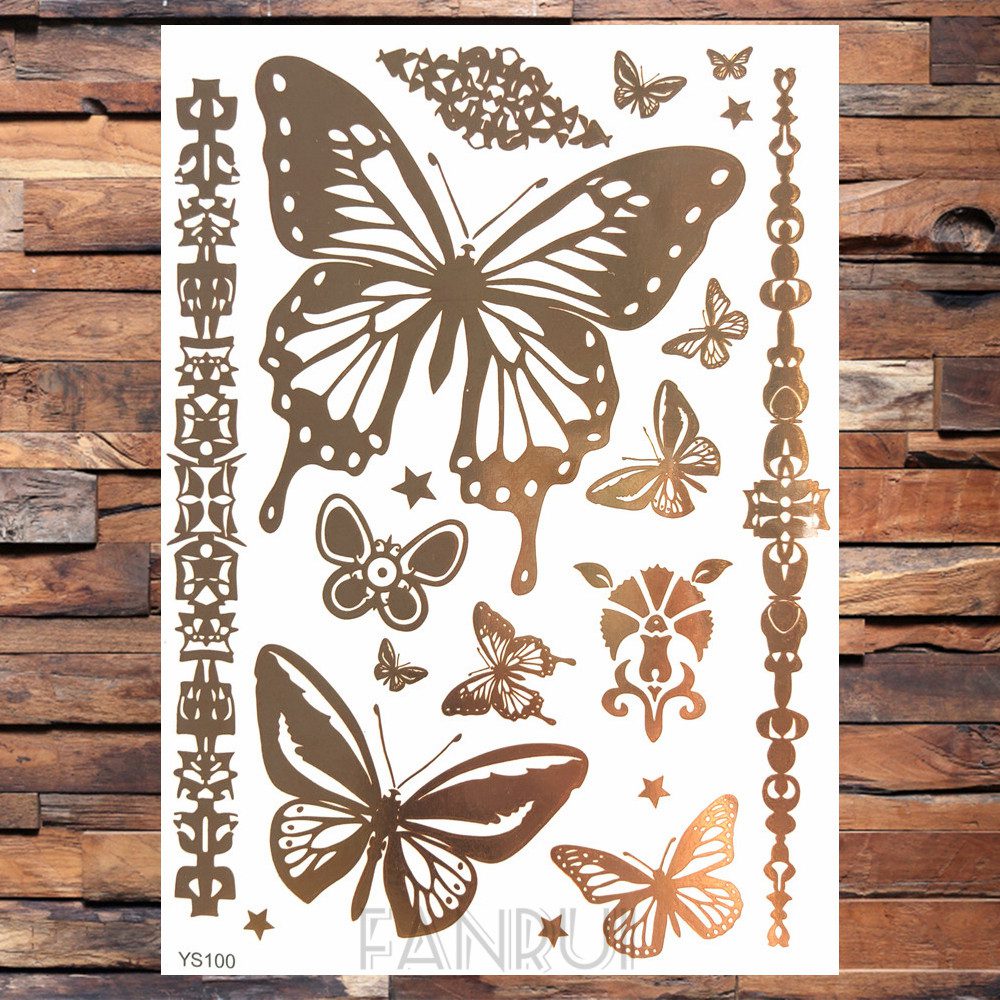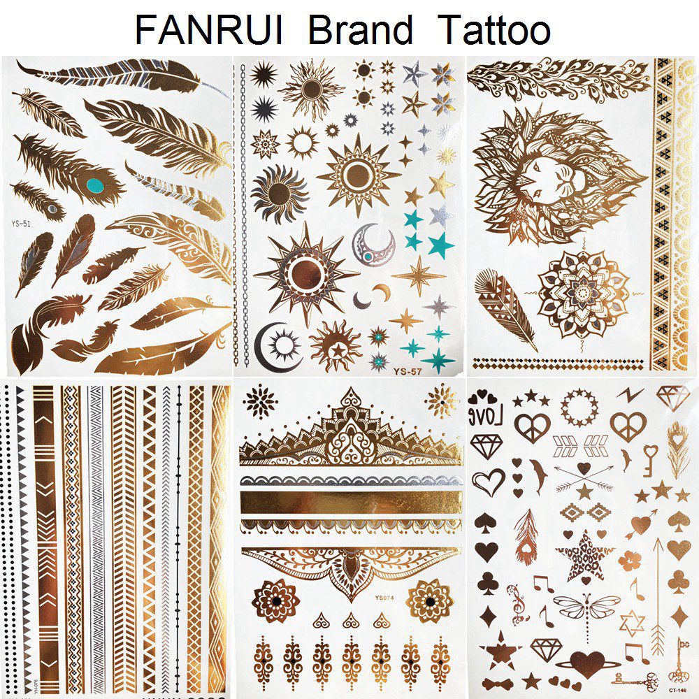 Sexy Sun Moon Star Temporary Tattoo Women Party Body Arm Art Fake Flash Tatoos Gold Metallic Tattoo Stickers Girl Bracelet Wrist