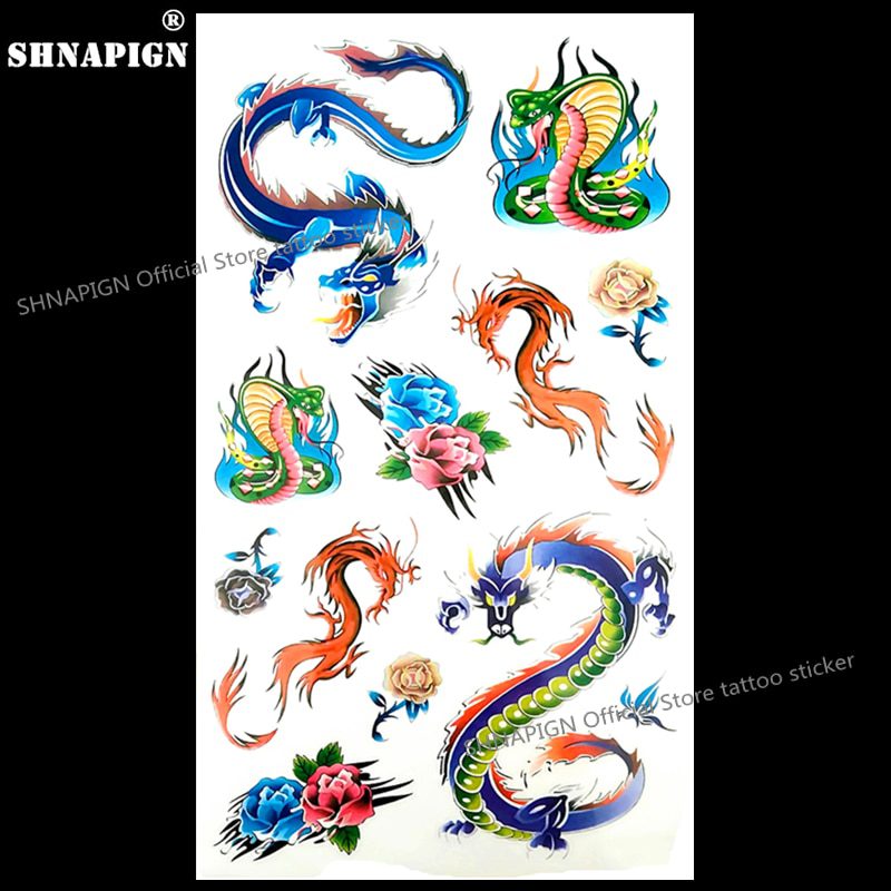 SHNAPIGN Colorful Snake Dragon Temporary Tattoo Body Art Flash Tattoo Stickers 17*10cm Waterproof Fake Car Styling Wall StickerSHNAPIGN Colorful Snake Dragon Temporary Tattoo Body Art Flash Tattoo Stickers 17*10cm Waterproof Fake Car Styling Wall Sticker