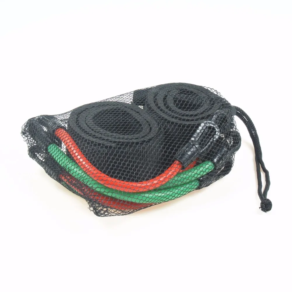 Snel geleverd. Stevige banden met goeie klittenband. Idd 2 rode en 2 groene elastieken. Had leuk geweest als er ipv 2 x 2 kleuren er 4 verschillende kleuren/sterktes waren. Maar ok dat wisten we van te voren.