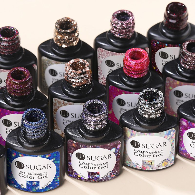 UR SUGAR 7.5ml Glitter UV Gel Nail Polish Glitter Sequins Soak Off UV Gel Varnish Colorful Nail Gel Polish DIY Nail Art Polish