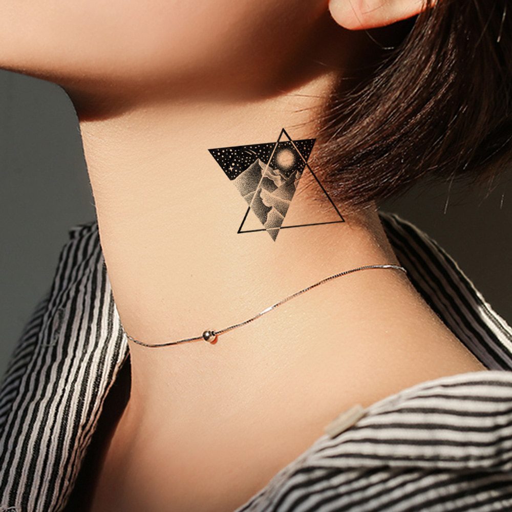 VANKIRS Triangle Behind Ear Tattoo Galaxy Hill Water Transfer Stickers Men Fashion Small Temporary Tattoos Body Arm Fake Custom Tattoo