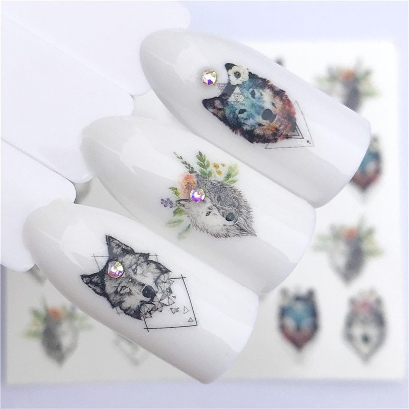 YZWLE Nail sticker Art Decoration Slider Fox Wolf Animal Adhesive Design Water Decal Manicure Lacquer Accessoires Polish Foil